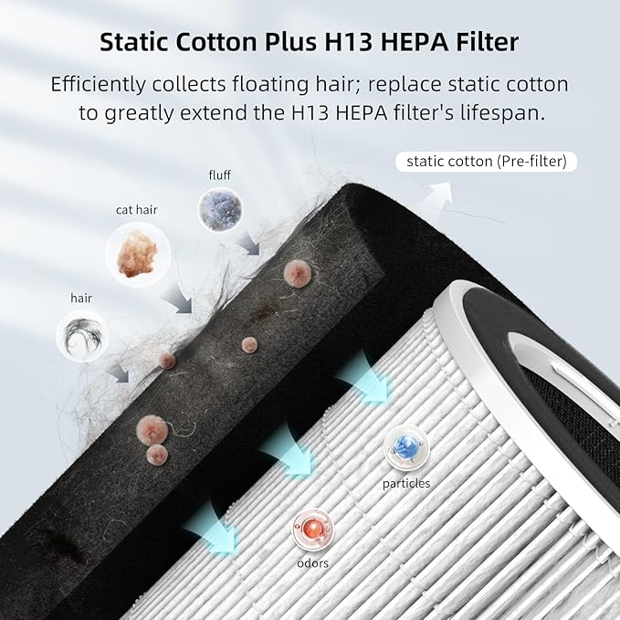 - Electrostatic cotton filter design to capture more pet dander and less filter replacement