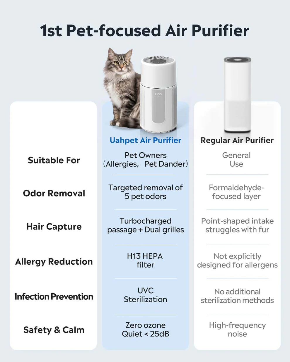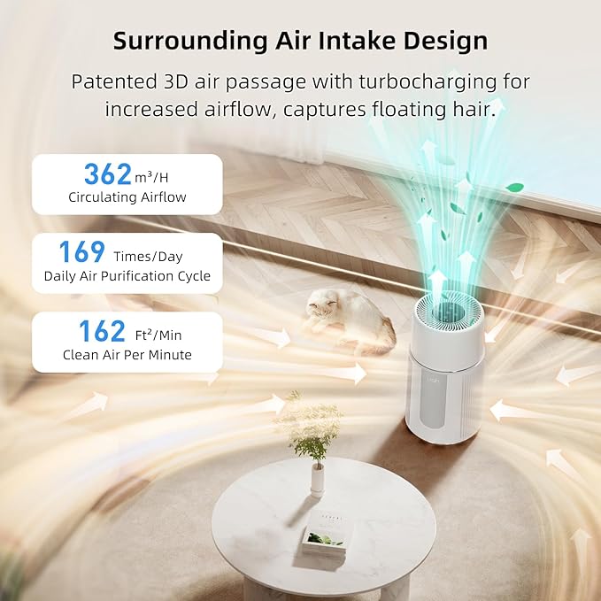 uahpet Air Purifiers for Pets, Dogs Cats Air Purifiers with Air Quality and 3 Mode Fan Speed, HEPA Filter Air Purifiers for Pets, Floating Hair, Allergy, Dust, AP-L2-G201