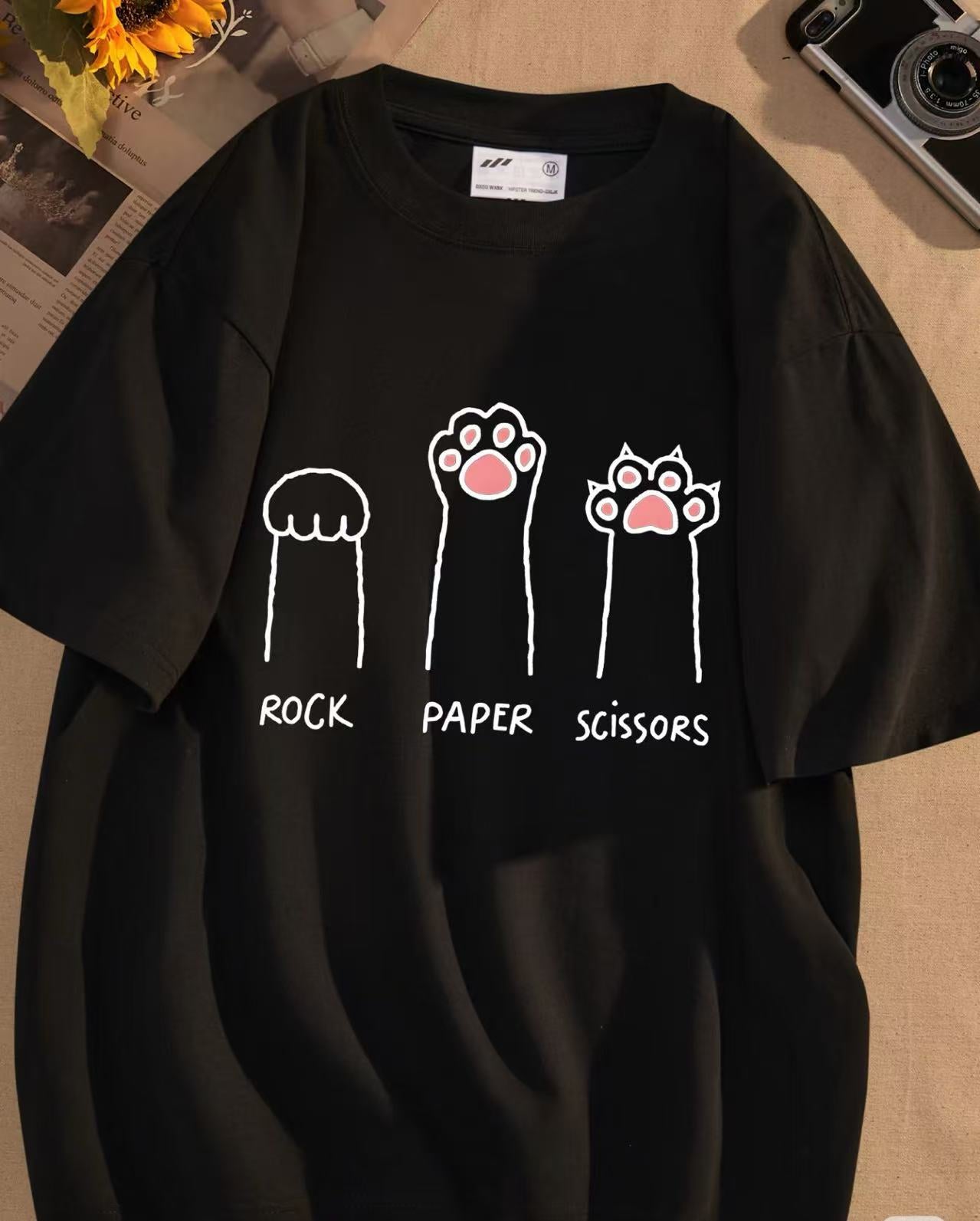 Rock Paper Scissors Hand Game Cute Paw Funny Cat T-Shirt